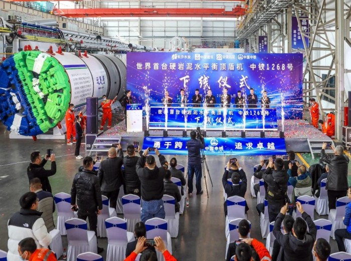 長沙水業、中建五局、安徽遠足、中鐵裝備聯合研制的世界首臺硬巖泥水平衡頂盾機“中鐵1268號”在中鐵裝備南昌基地成功下線。該設備采用全新的“頂管+盾構”設計概念,融合了頂管機和盾構機的裝備技術優勢,采用“先頂管、后盾構”的施工模式,可有效滿足城市地下管網建設中非開挖、小直徑、長距離、曲線頂進等特殊要求,對提升城市地下管網機械化建設具有重要意義。
